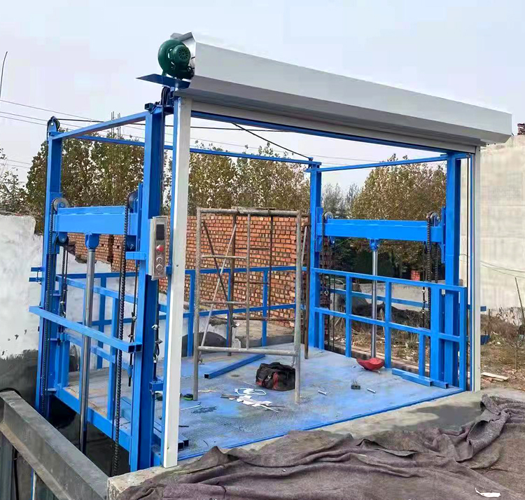 大臺面升降貨梯是采用軌道鏈條式結構的,是一種非剪叉式升降機,導軌式升降機升降高度從4米到14米,載重從1噸到10噸不限。升高8米以下時,剪叉式升降機較導軌式貨梯成本更低,一般升高6米以上時,可主要考慮導軌式升降機,其在升降穩定性、操作方便程度上不輸于剪叉式升降機。